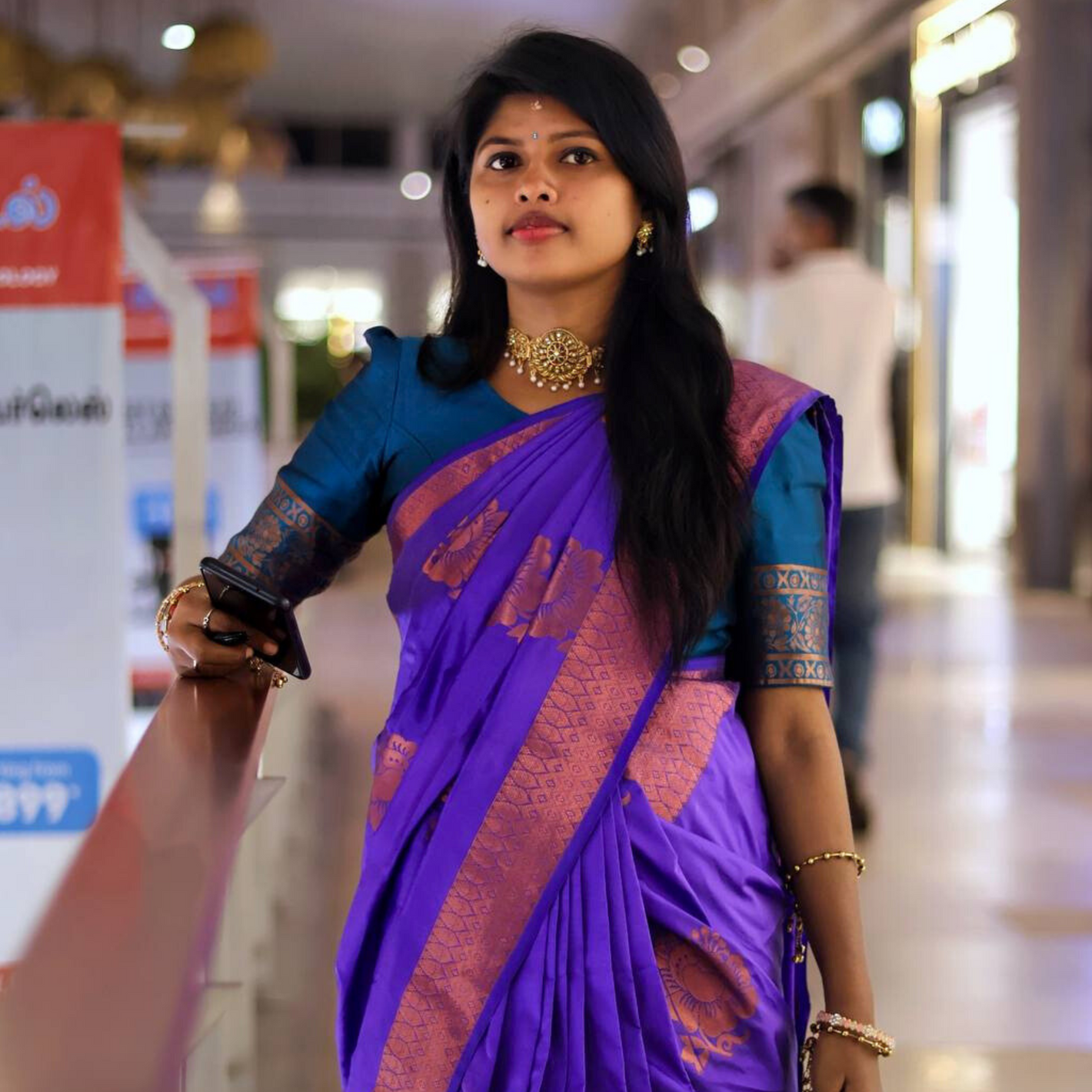 Royal Blue Handloom Kanjivaram Saree with Red Pallu and Contrast Blouse SB002