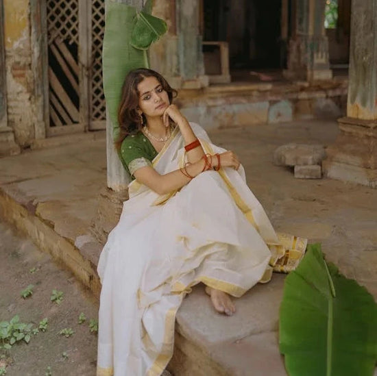 White Handloom Kanchipuram Saree with Pink Pallu SB010