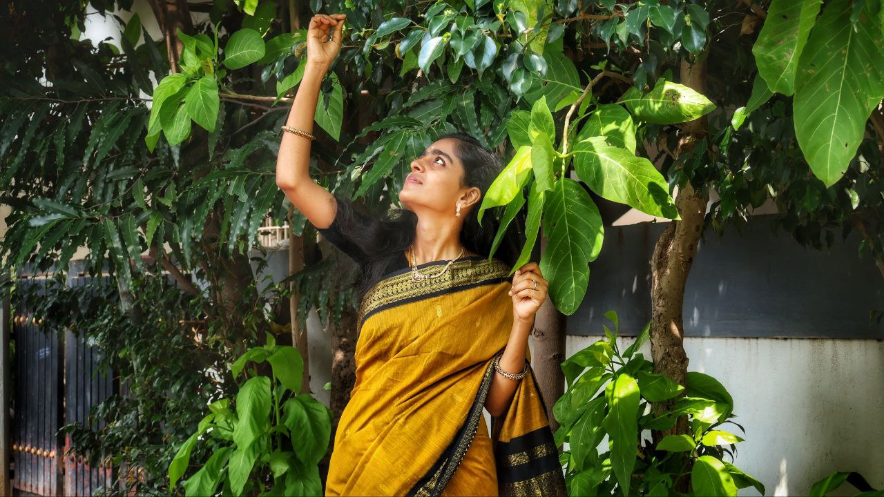 Yellow Handloom Kanjivaram Soft Silk Saree with Copper Border and Purple Pallu SB001