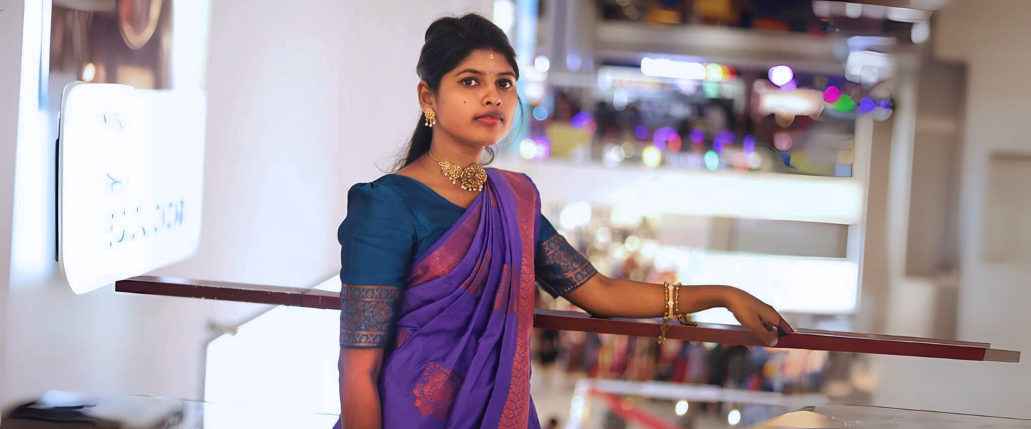 Royal Blue Handloom Kanjivaram Saree with Red Pallu and Contrast Blouse SB002