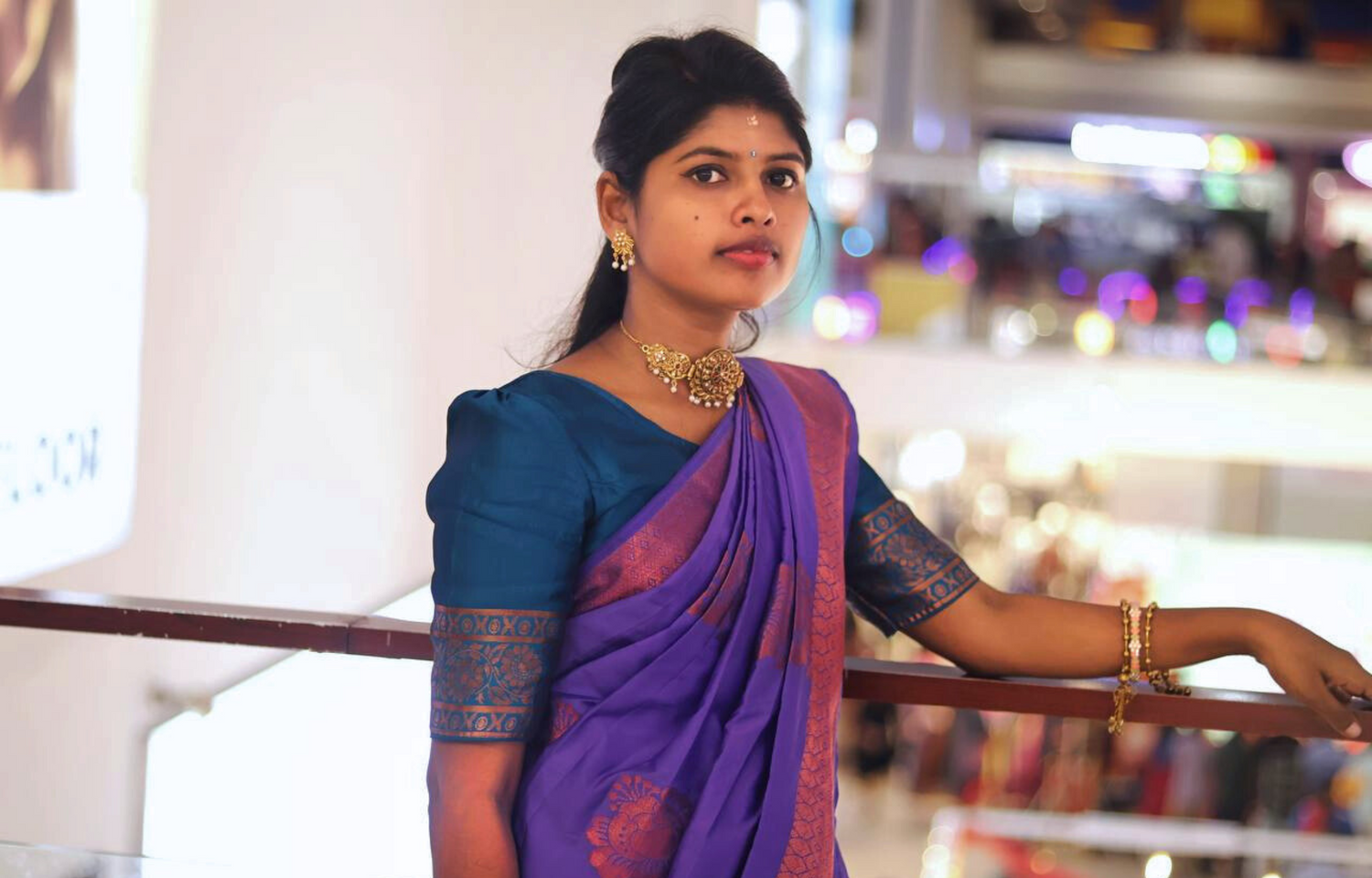 Pink Handloom Kanchipuram Saree with Peach Pallu and Contrast Blouse SB009