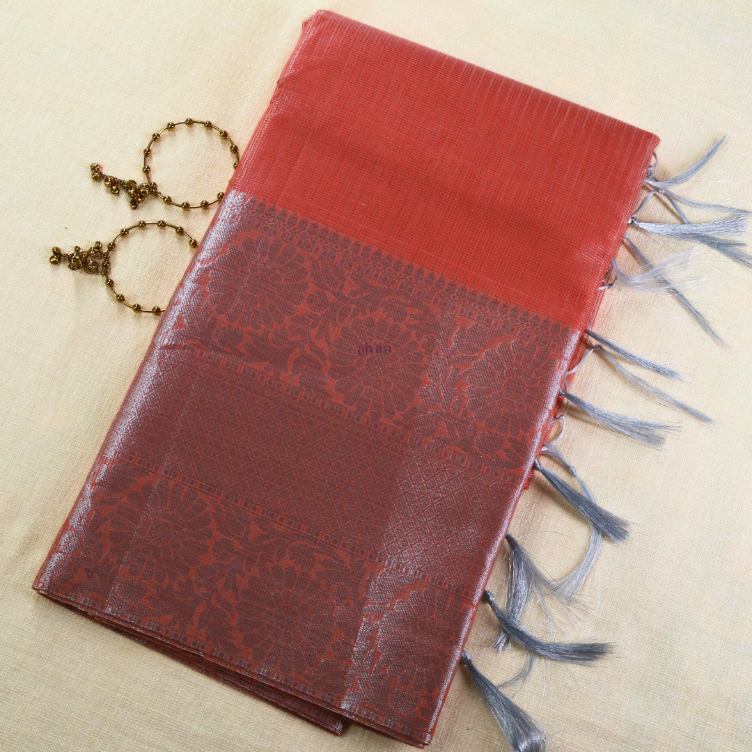 Tissue sarees are crafted from finely woven silk, creating a lightweight yet lustrous fabric that drapes beautifully. Known for their subtle sheen and delicate texture, these sarees feature intricate zari work that enhances their elegance. Ideal for weddings and festive events, tissue sarees bring a touch of timeless grace to any occasion.