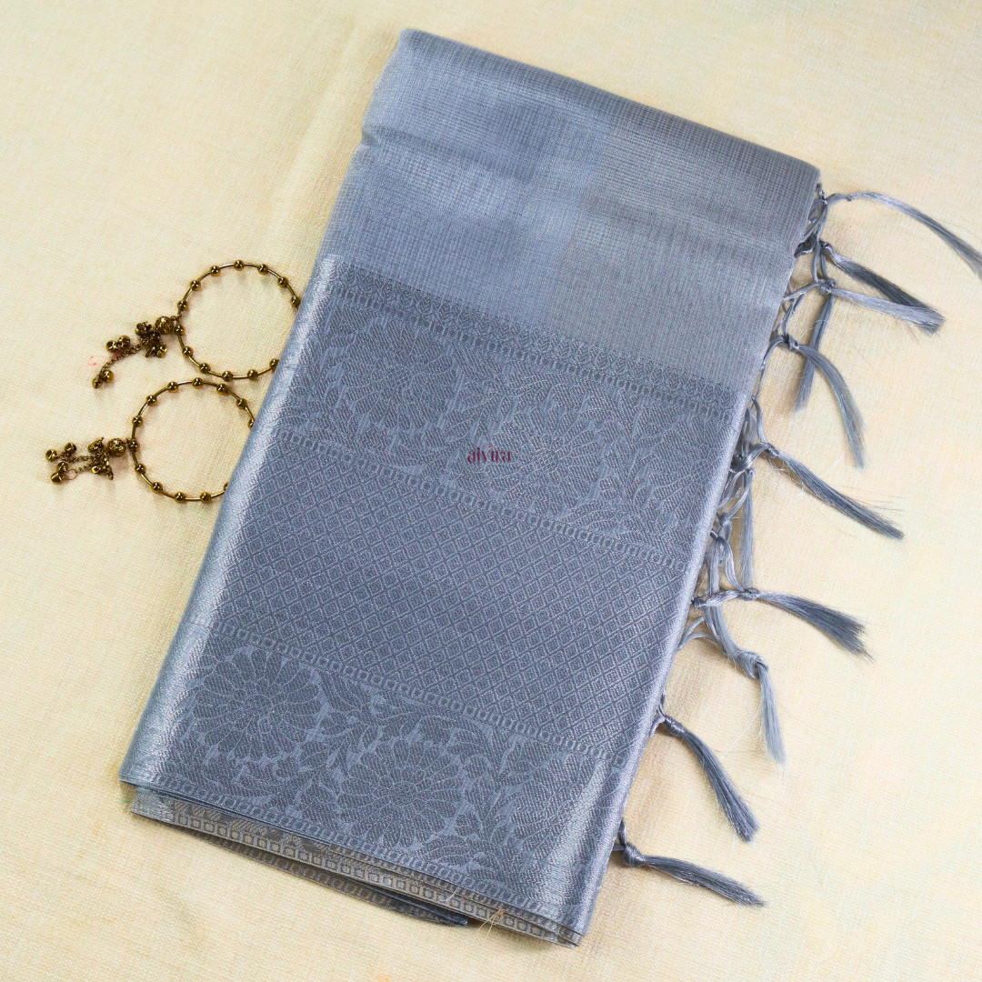 Tissue sarees are crafted from finely woven silk, creating a lightweight yet lustrous fabric that drapes beautifully. Known for their subtle sheen and delicate texture, these sarees feature intricate zari work that enhances their elegance. Ideal for weddings and festive events, tissue sarees bring a touch of timeless grace to any occasion.